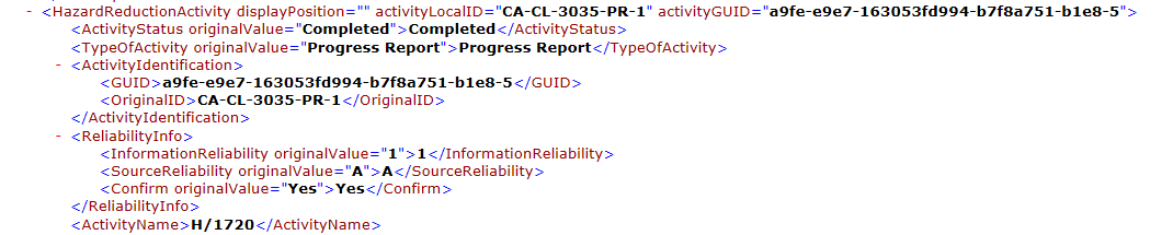 The main table is called hazreduc and the maXML element level3 is called HazardReductionActivity.