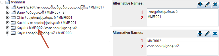 The order is Country Structure name / Alternative name 1 / Alternative name 2.