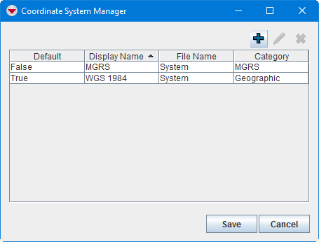 4. Click the Submit button. The selected coordinate system displays in the Coordinate System Manager window.