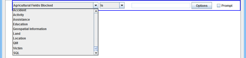 If you select SQL from the attribute drop-down list, you can enter a valid SQL statement in the value field. See Building Searches for more information.