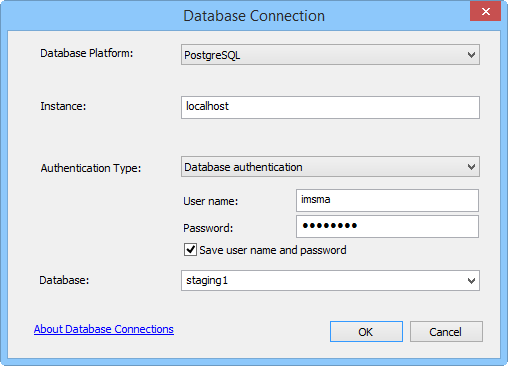 10. Select the database and click OK.