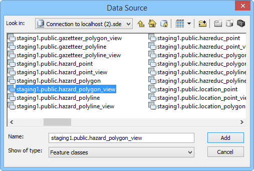 14. Select the corresponding view, in this example hazard_polygon_view. Click on Add.