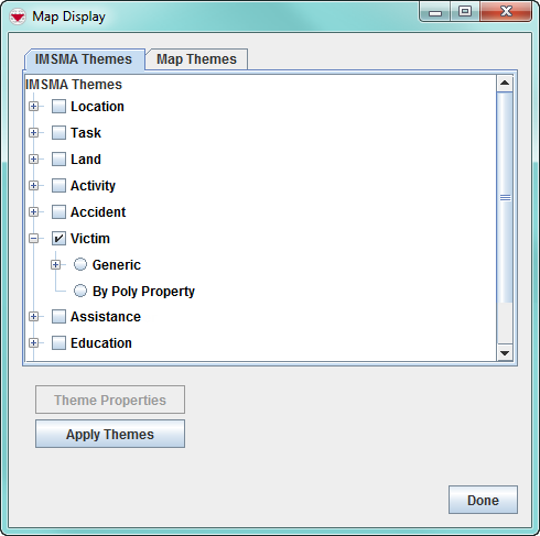 9. The sub-theme is automatically added to the IMSMA Themes tab of the Map Display Window.