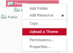 Once a new theme (in form of a zip file) is made available, it can be uploaded to MINT by right-clicking on the themes folder and choosing Upload a Theme.