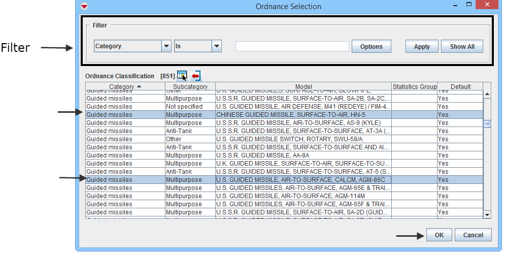 1. Click Add to open the Ordnance Selection window.