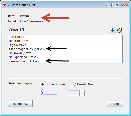 The values Ferrimagnetic and Titanomagnetites are added. The other fields that uses the same enumeration list are also affected.