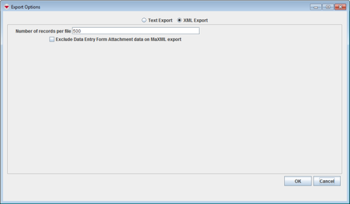 4. If you do not want to include the attachments, check Exclude Data Entry Form Attachments data on maXML export.