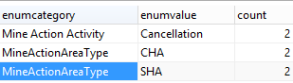 This query lists the duplicate enumvalues created after the upgrade scripts. Note that the functions lower will be used so duplicates like Evidence Point and Evidence point will be found, trim will find " Active" and "Active" and replace will find Cluster Accident and ClusterAccident.