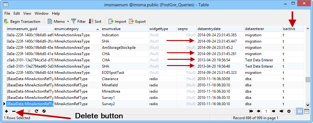 4. If necessary set isactive to t (TRUE) on the old rows if the country had them as Active in 5.08.04 and delete the new rows.