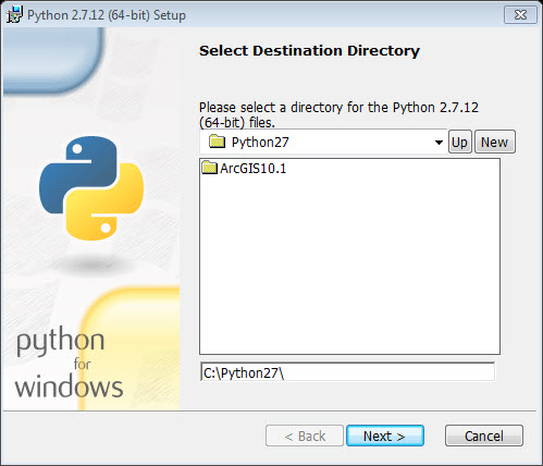 3. Seleccione “c:\Python27\”, haga clic sobre Next