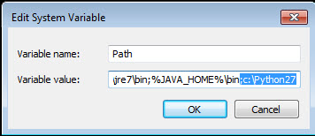 4. En valor de la variable, vaya al final de la información y agregue ;c:\Python27