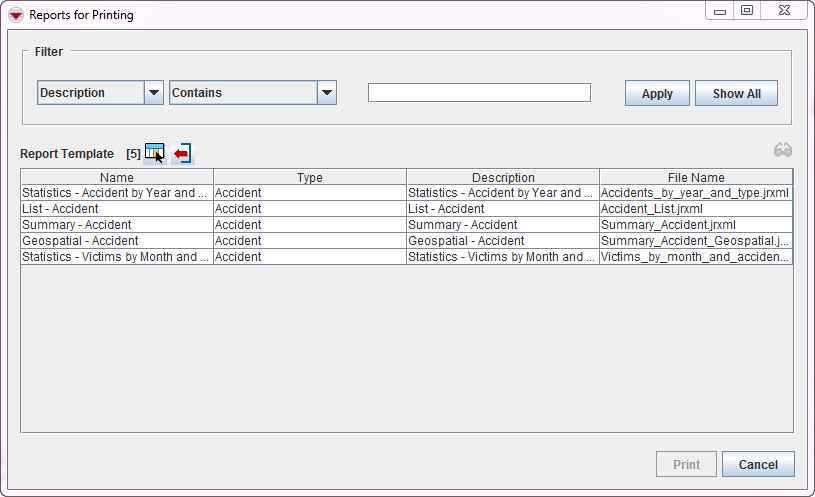 You can filter the report list. You can select a report and either run, edit or delete the report. You can also add a new report.