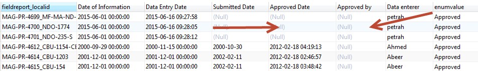 If you have any output here you need to take action. The queries below help you to identify for which item(s) the rows in the table fieldreport need to be updated.