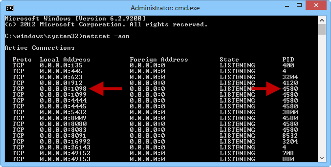 1 Start a command window, type netstat -aon and press Enter