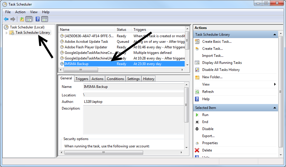 11. Browser to the previously created script, e.g. C:\backups\runIMSMAbackup.bat Click Next and then Finish.