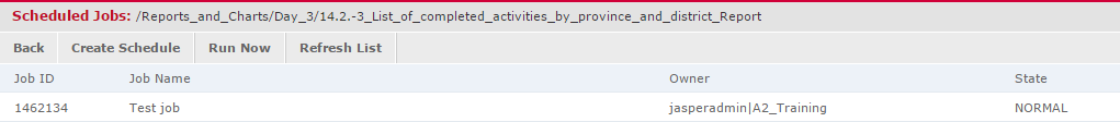 Note that the job list is always report-specific, i.e. only the jobs for the particular chosen report are displayed - there is no global view of all jobs defined within an organisation.