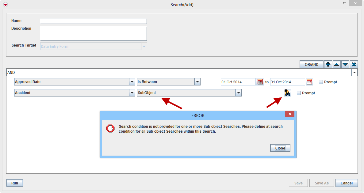 Click on the SubObject Search and specify a search criterion for the subobject.
