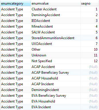 Afghanistan and Sudan have all the enumeration categories updated in alphabetic order with Other, Unknown and Not Specified in the end of each category.