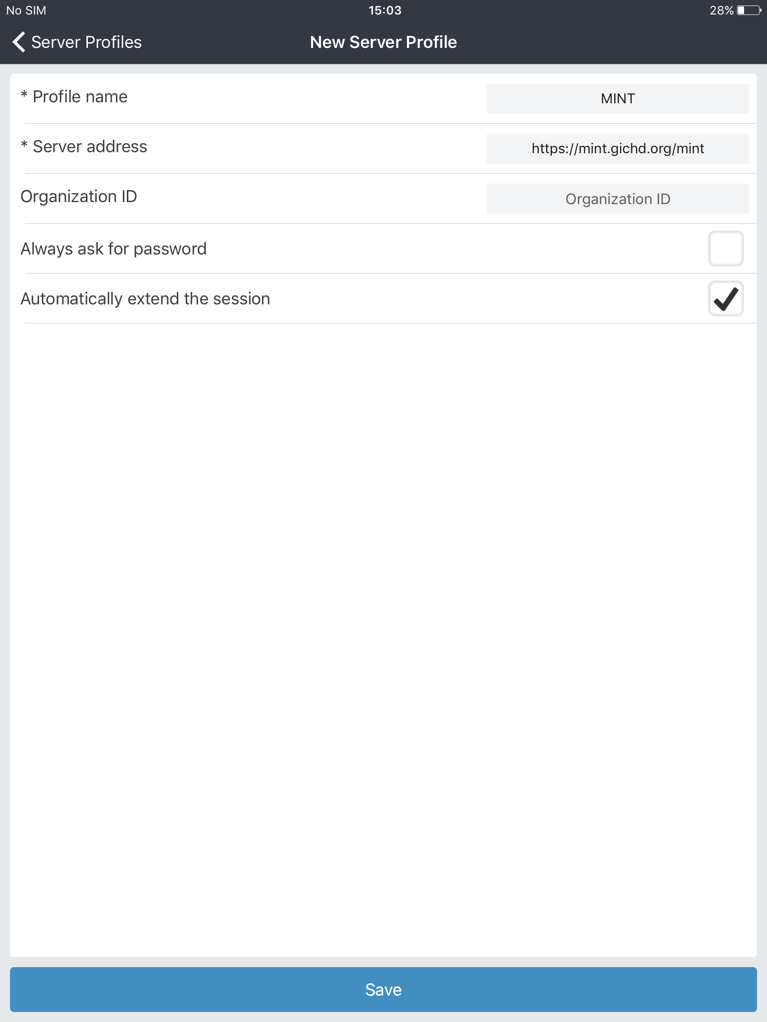 In order to make the app interact with MINT, click on Add Account for configuring the connection details. Enter the following information: