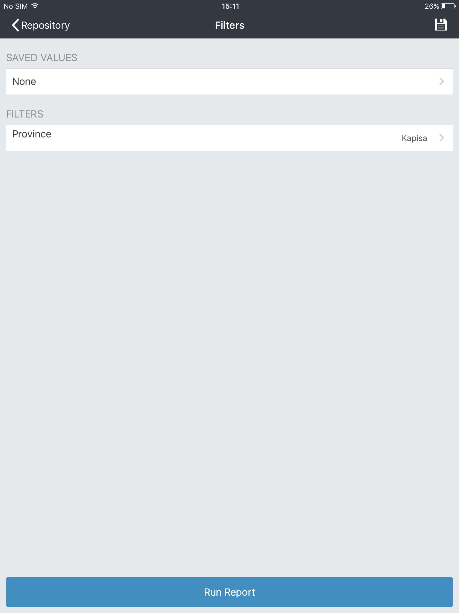 It is possible to interaction with reports/dashboards via the mobile App if filters/input controls are defined within the reports/dashboards. To do so, click on the icon as displayed below: