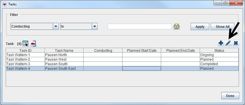 1. In the Tasks list window, select the row associated with the Task you would like to view or change.