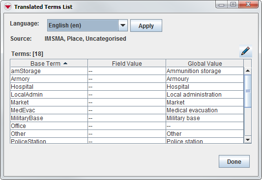 12. The Value that you will use in the IMSMA.mxd is listed in the Base Term column. You need to write exactly as it is written here including spaces.