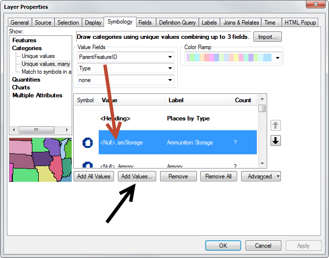 13. Switch back to ArcMap and click on the Add Values button.