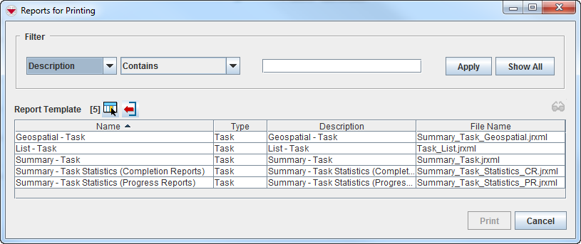 By default, all tasks are listed in the table when the Tasks window is opened. You can limit the tasks displayed in the table by selecting specific filter attributes.