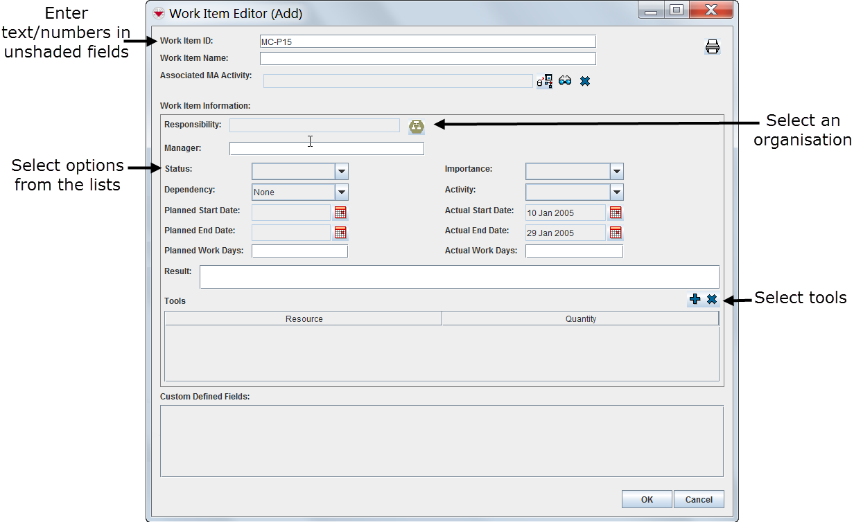 The tasking tool allows operations staff to create task dossiers by grouping useful information for planning and monitoring a task. The tasking tool includes lands to be addressed (that is, the objective of the task) and work items such as surveys, clearances, education activities and QMs. Any other related information can be included in the binder.