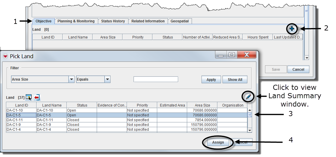 Depending on local standard operating procedures (SOPs), the tasking tool can be used to manage activities for one land or several lands, or for monitoring a specific organisation that was tasked.