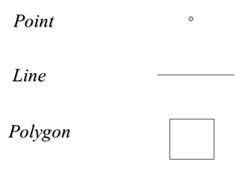 Vector data comprises of vertices and paths. These include points (hospitals), lines (roads) and polygons (areas). Vector data can be in various data formats, these include: