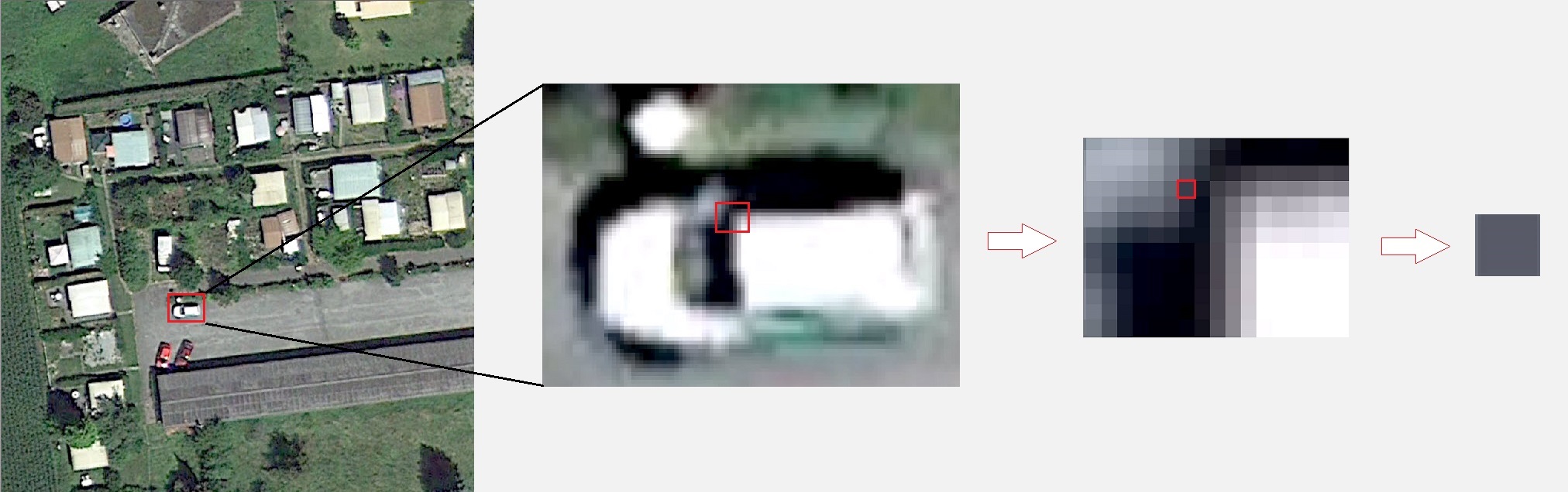 In imagery resolution represents the amount of area each pixel of an image covers. For example, an image with 1 meter resolution means that each pixel in the image is the width and height of 1 meter, this means any objects which are smaller than a meter will not be visible in an image. The smaller the resolution = the higher amount of detail an image will have. Low resolution imagery however is excellent for use over large areas and looking at more general patterns and datasets. If a map is needed with an image over a district, a lower resolution image would be better than a very high resolution image. However, when looking at specific areas such as a specific SHA or CHA, high resolution imagery is needed.