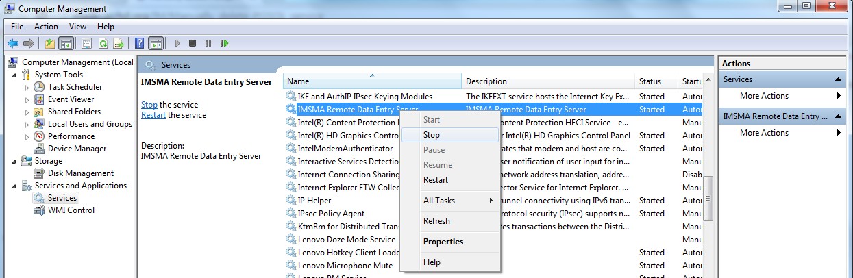 Manually delete IMSMA Remote Entry service