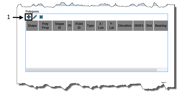 1. Click above the Polygons table to open the Polygon/Polyline Editor dialog box.