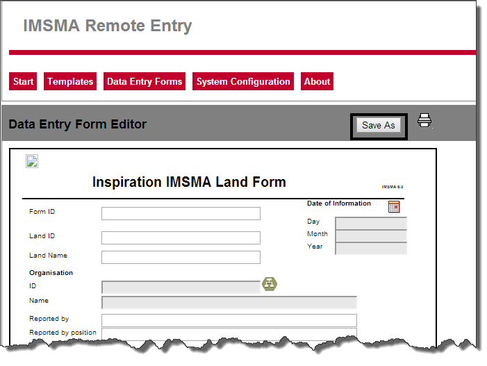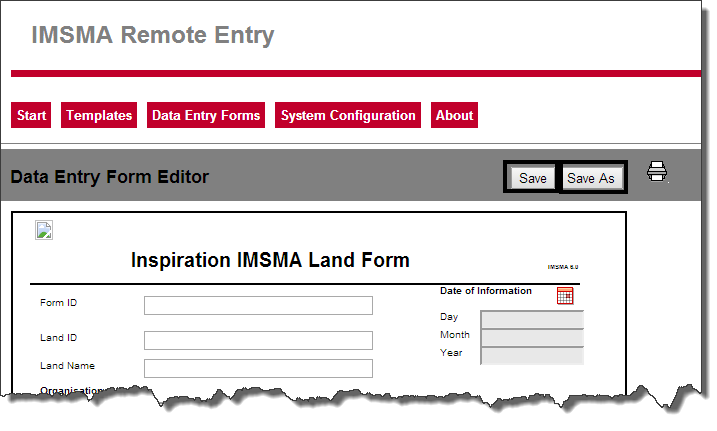 • To save a new Data Entry Form, click Save As.