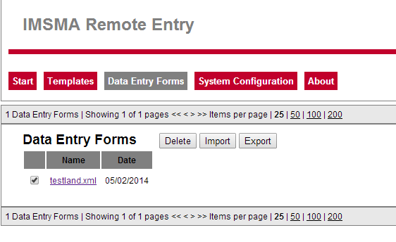 6. The imported Data Entry Form displays on the Data Entry Forms tab by file name and import date.