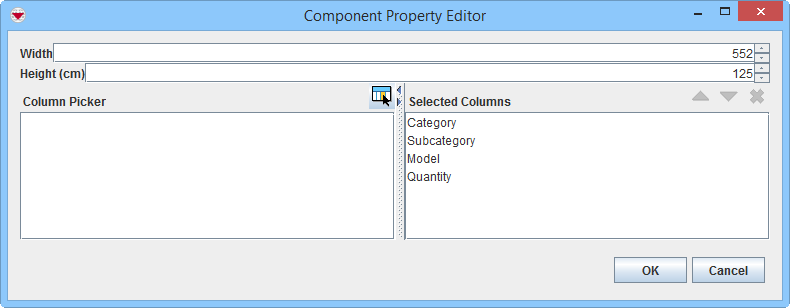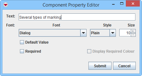 The fields in the Component Property Editor window differ depending on the widget type selected.